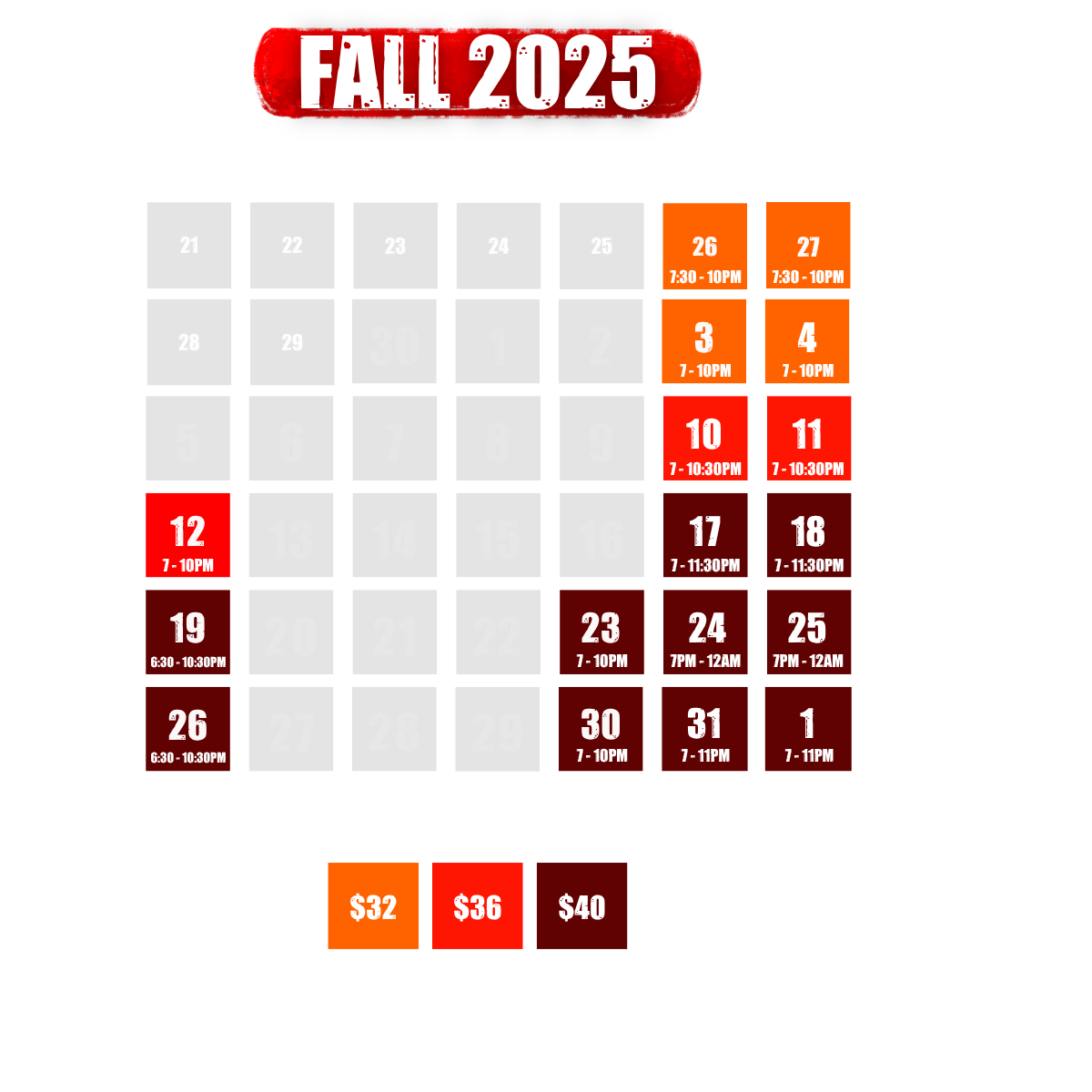 October 24th, 25th................ 7:00 PM - 12:00 AM